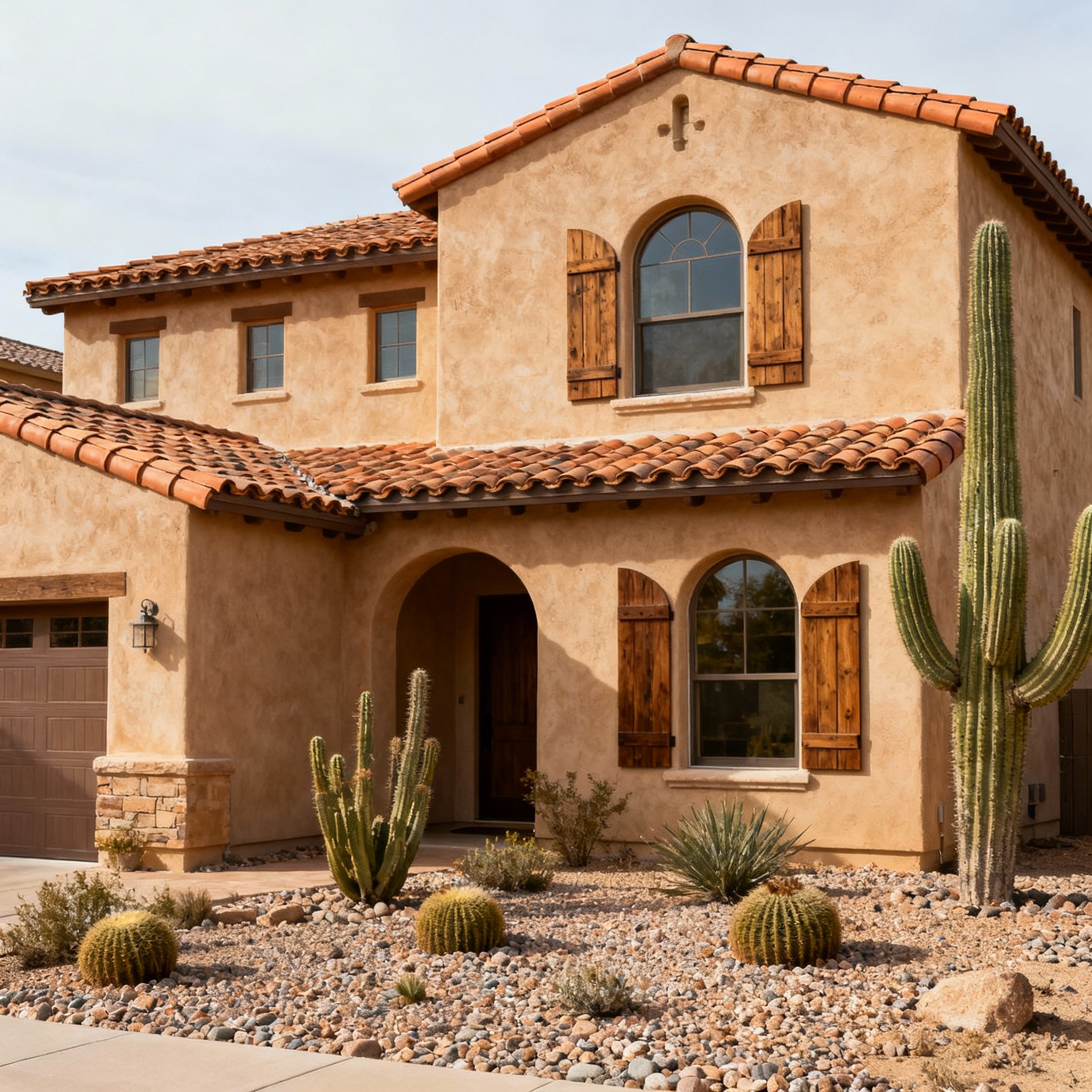 Architectural authenticity featuring stucco exteriors, tile roofs, and Mediterranean landscaping throughout 2,600 homes